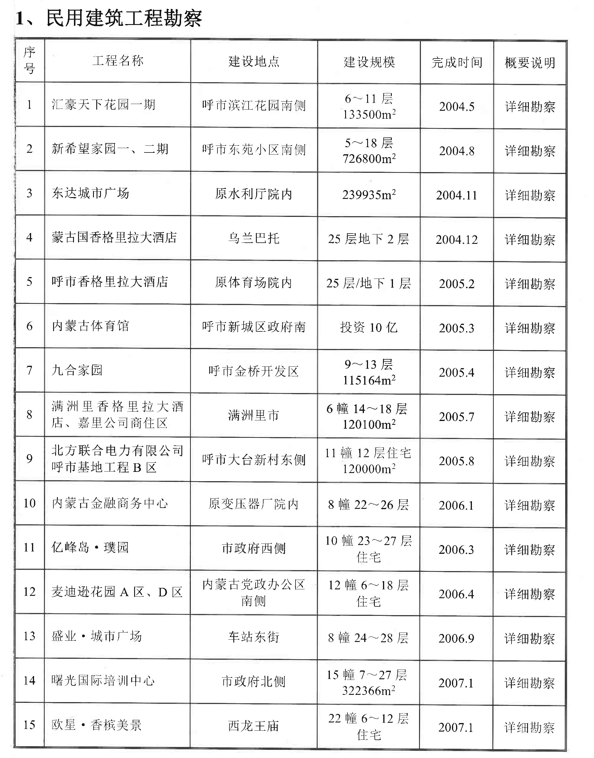 • 內蒙古建筑勘察設計研究院勘測有限責任公司,是全國首家完成 轉企建制的省級建筑勘察設計單位。公司前身為內蒙古建筑勘察 設計研究院勘測分院, 成立于1954年 ,經過六十多年的發展, 現已成為全區技術力量雄厚、專業設置齊全的集巖土工程勘察 、 設計、治理、檢測、監理、咨詢、水文地質勘查、工程測量、科 研為一體的綜合性企業 ... ... [查看詳情]